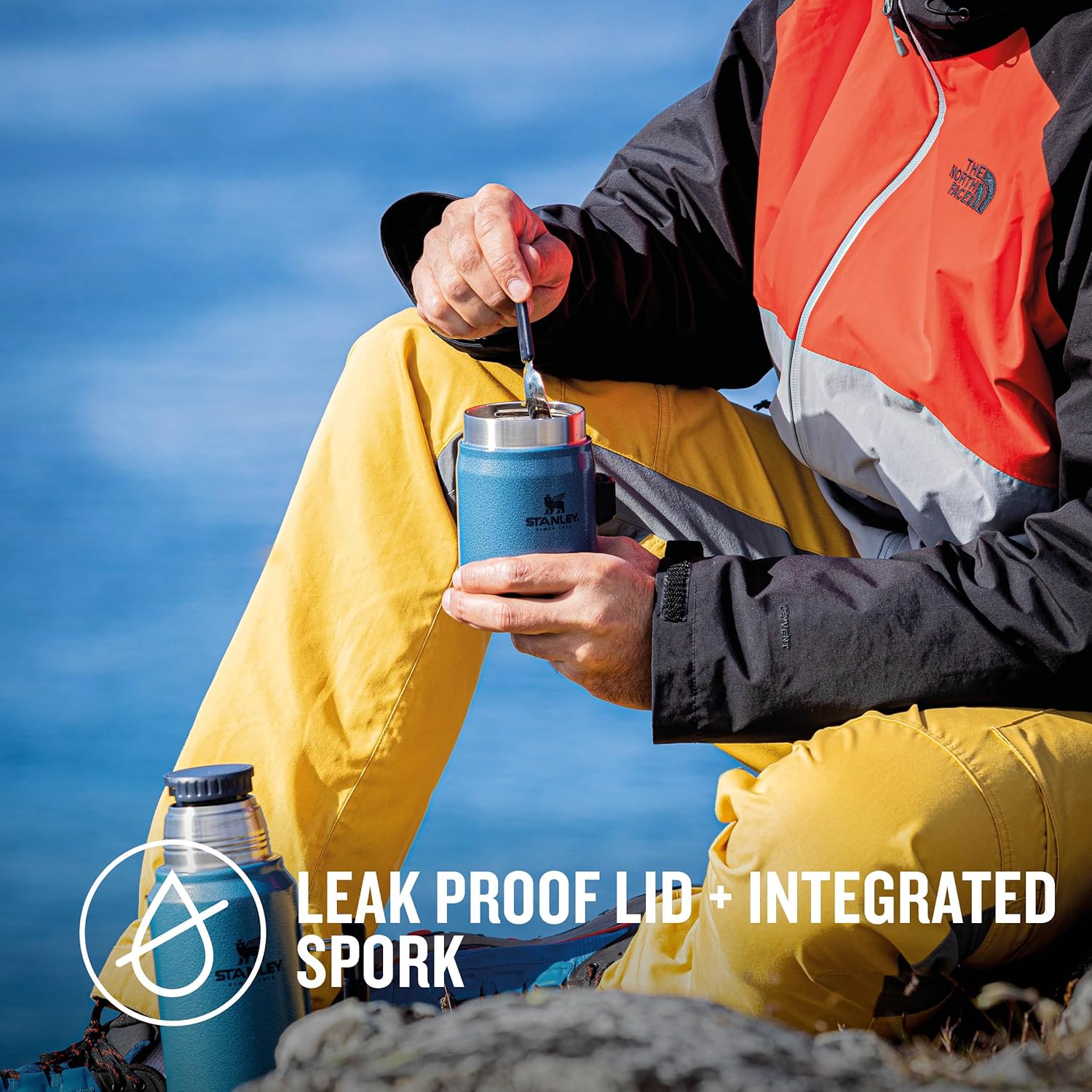 LEAK PROOF LID: This Stanley food thermal flask features a leak-resistant lid, allowing you to pack it in your backpack without spills. It also includes a stainless steel spork that fits securely in the attached bracket.